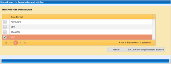 Setzen sie das Häkchen bei „Xml“ und betätigen Sie die Schaltfläche „Weiter“